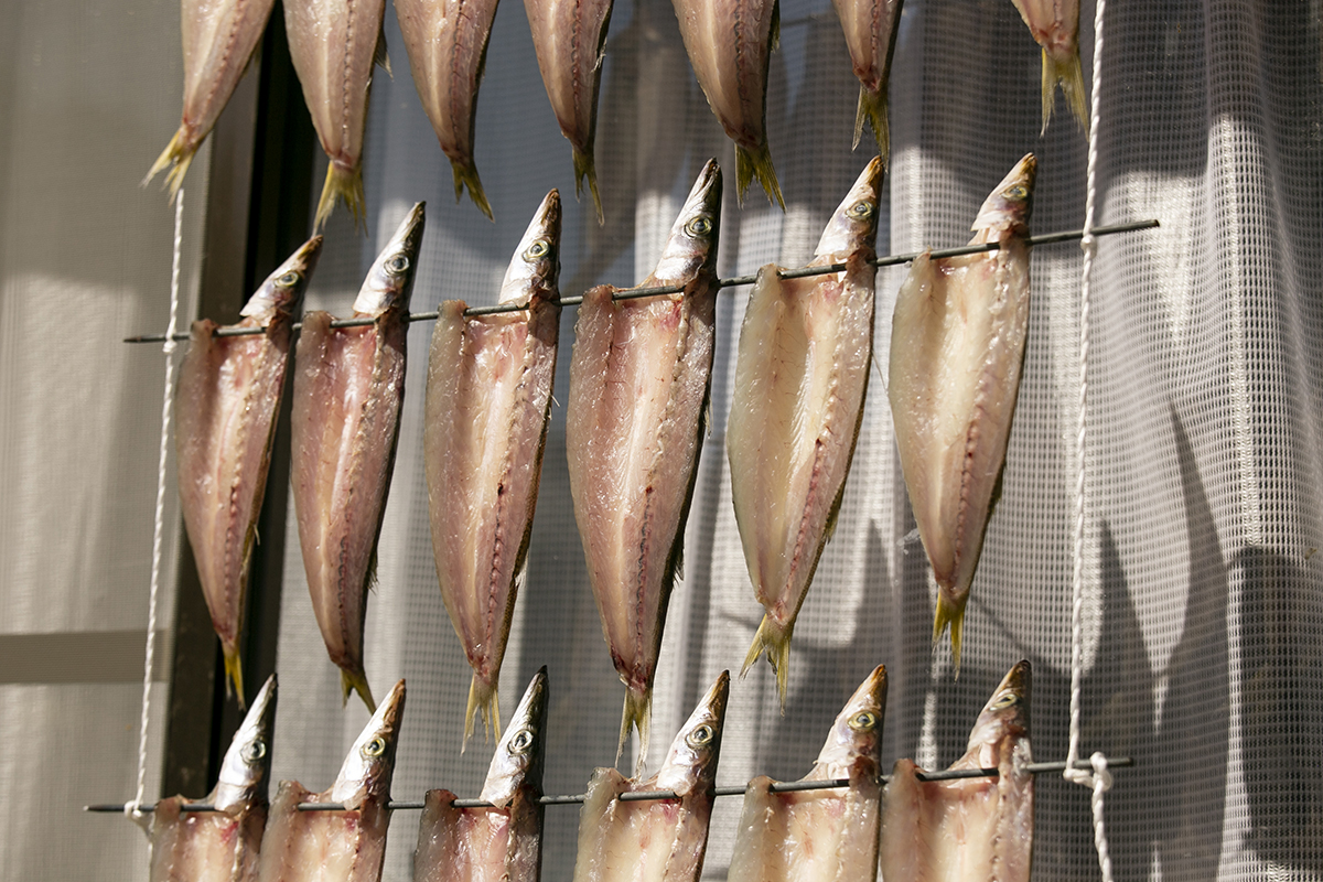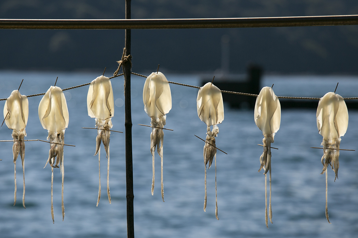 Una sola calle de 5 km recorre la bahía de Ine y, paseando entre sus casas y Funayas, es habitual encontrar calamares y pescados colgados secándose en la calle. Esta antigua técnica culinaria se denomina Himono y consiste en secar diferentes tipos de pescado y moluscos al sol después de tenerlos un tiempo en agua salada. El origen de esta técnica de secado nació en la antigüedad con el objetivo de conservar alimentos. El Himono fue evolucionando y adaptándose a los paladares de distintas épocas hasta conseguir un producto jugoso y lleno de umami, que llegó a considerarse un lujo en la corte imperial de Kyoto durante el periodo Edo (s.XVI).